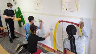 Bevor wir unsere "Großen" schweren Herzens auf den Weg in die Oberschulen schicken, dürfen sie sich noch bei uns verewigen. In diesem Jahr ist es der Flur, der sie nun sechs Jahre begleitet hat. Frisch geweißt haben sie die beste Grundlage, um ihre künstlerischen Ideen umzusetzen. Es ist Wunderbares entstanden.