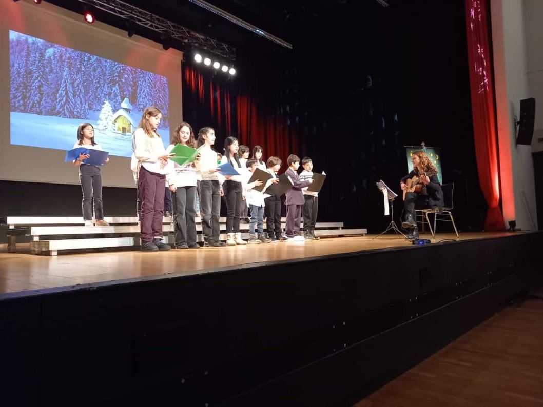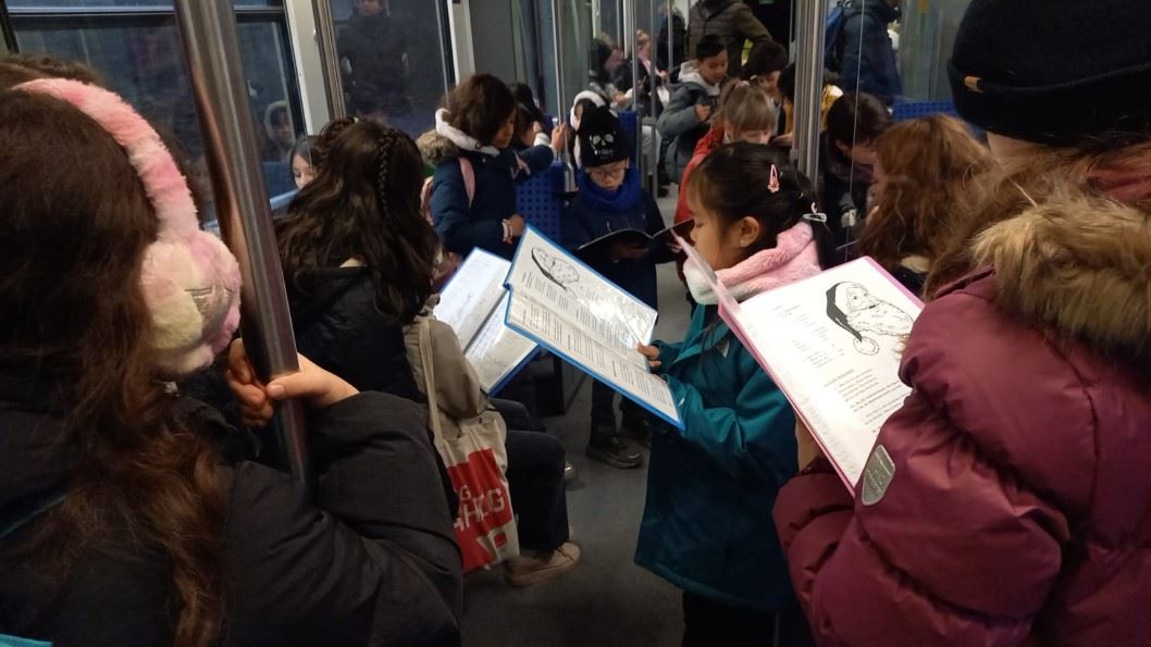 Das Einstimmen und Einsingen zum 2. Advent fand bereits in der S-Bahn statt. Zur Freude der anderen Fahrgäste übten die Kinder nochmal Lieder aus dem Weihnachtsprogramm. Dann stand der Chor auf der großen Bühne des Bürgerhauses Neuenhagen. Die Kinder sangen zuerst mit dem Frauenchor gemeinsam ein Lied und anschließend stimmten sie bekannte und unbekannte weihnachtliche Lieder an. Der Stolz während des Applauses und der "Zugabe"-Rufe war den Kindern deutlich anzumerken. Sie haben in Neuenhagen viel Freude mit ihrer Musik verbreitet und für sich eine tolle Erinnerung geschaffen. Wir danken allen, die dazu beigetragen haben, dass diese Momente heute möglich wurden.