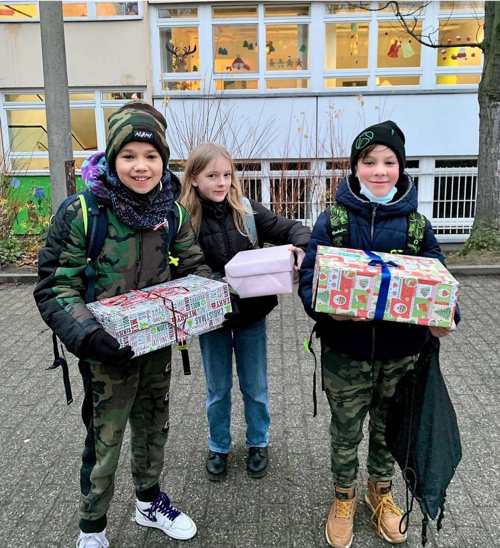 Kieran erzählte mir vor Kurzem, dass er gern bei der Aktion „Weihnachten im Schuhkarton“ mitmachen wolle. Ich finde diese Idee seit ihrem Bestehen großartig und ermunterte ihn, die Eltern der Klasse mit ins Boot zu holen. Dafür aber oder gar eine Gesamtschulaktion war es etwas kurzfristig, aber: Kieran, Mick, Luisa und Giovanni haben sich freudig ans Packen einiger Schuhkartons gemacht, um Kindern in Not zu Weihnachten eine kleine Freude zu bereiten. Dank ihnen gehen nun 6 Kartons auf die Reise zu Kindern nach Osteuropa.