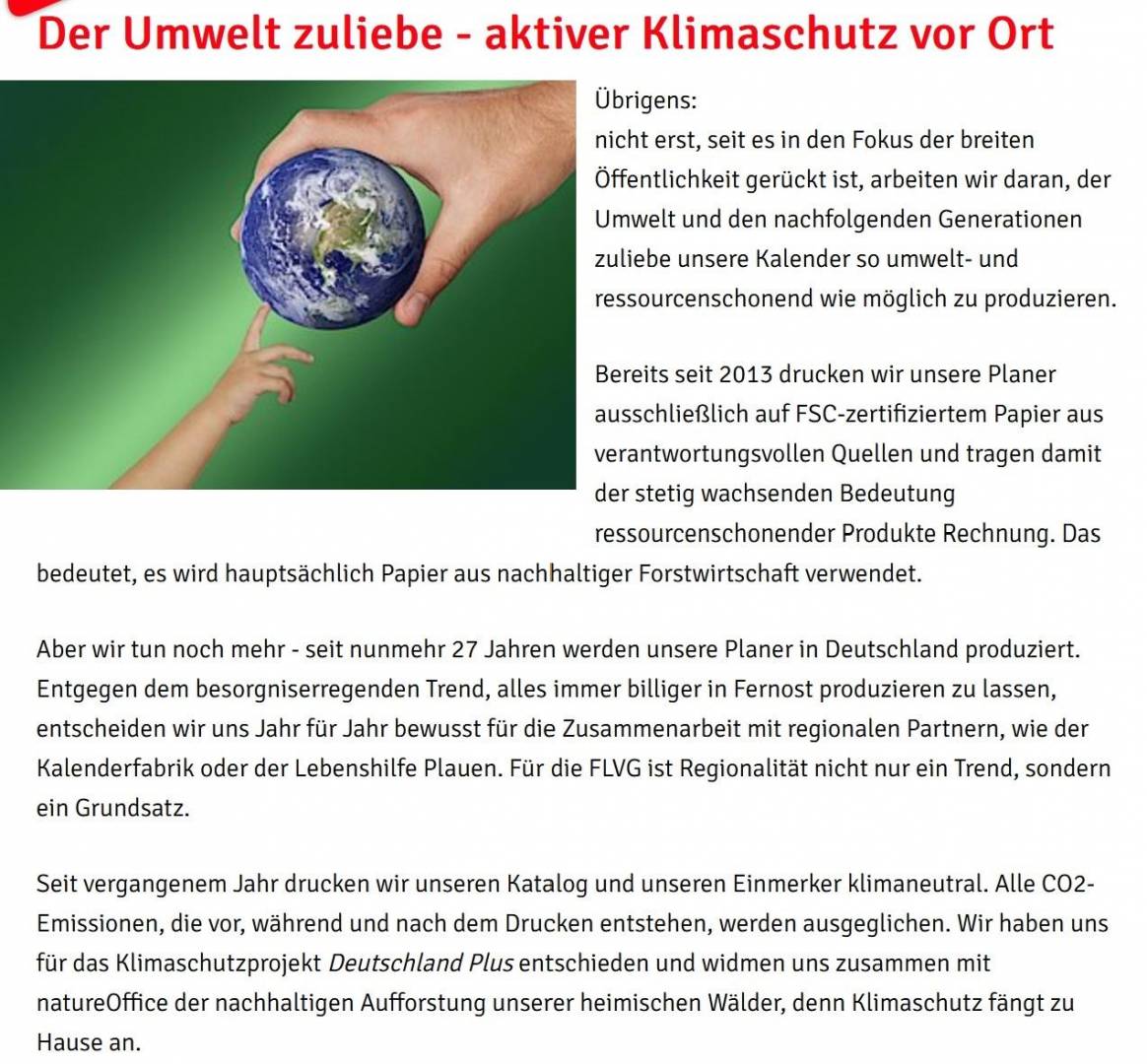 Wir freuen uns jedes Jahr, das der nachhaltig agierenden FLVG-Verlag den Zuschlag erhält und wir damit einen Nachhaltigen Kalender haben.