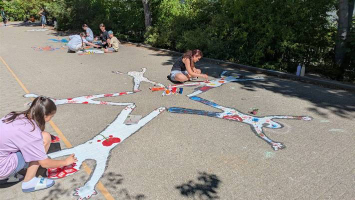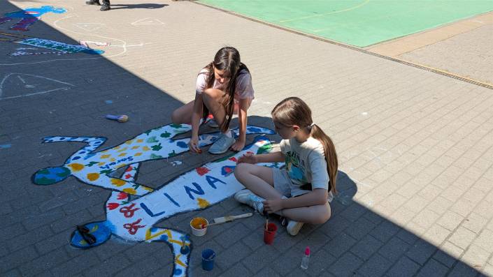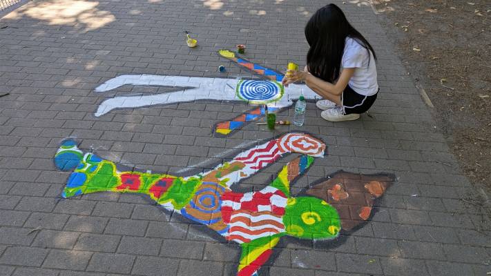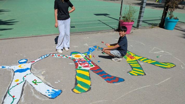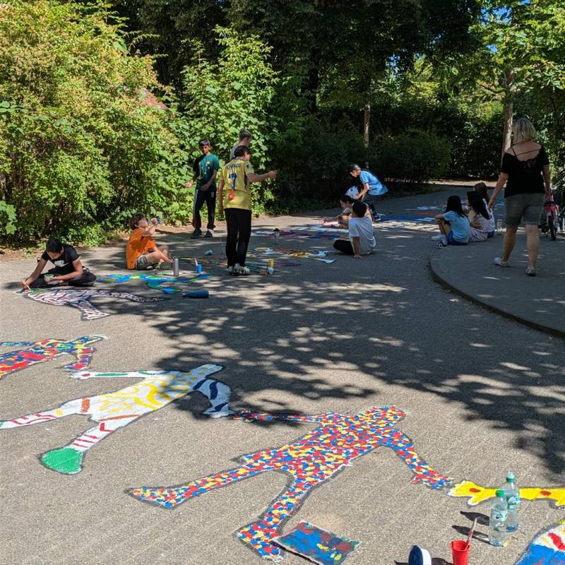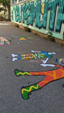 Es ist eine GMG-Tradition, dass sich die Kinder der sechsten Klassen künstlerisch bei uns ein Denkmal setzen dürfen. Das Schulhaus und die Turnhalle wurde so schon in den letzten Jahren wundervoll gestaltet und wir wollen davon auch immer möglichst viel erhalten. In diesen Jahr entstand also die Idee der Figuren, die auf dem Hof ihren Platz finden. Die Kindern haben geplant und durften ihren ganz persönlichen Platz und Stil finden und umsetzen. Sie haben sich gegenseitig geholfen und zunächst die Umrandungen von sich selbst mit Kreide gezeichnet. Dann wurde es bunt. In den Pausen haben sie interessierten Kindern von ihrem Projekt erzählt und auf ihre Figuren aufgepasst. Wir freuen uns über die wunderschöne Gestaltung und visuelle Erinnerung, die wir nun an diesem tollen Jahren haben. Vielen Dank allen, die sich an der Umsetzung beteiligt haben.