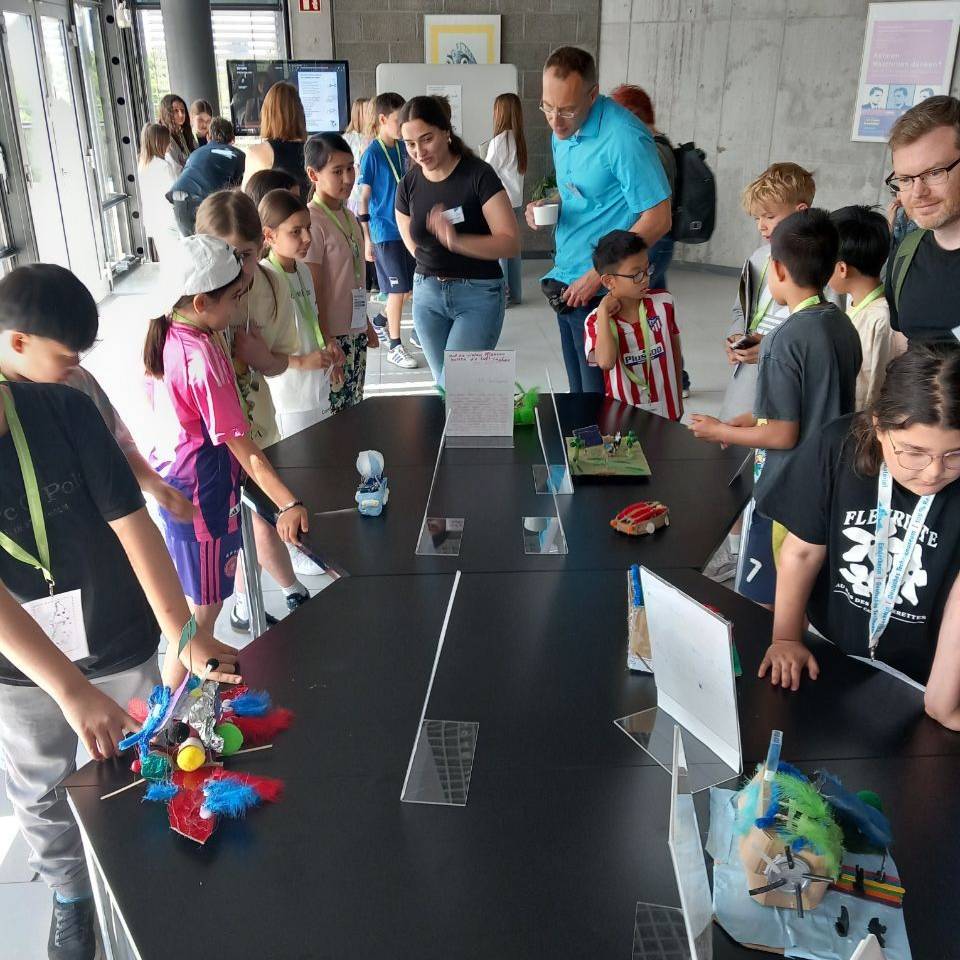 Bereits im Januar besuchten die Kinder den Junior Campus des deutschen Technikmuseums, um gemeinsam Modelle für eine nachhaltige Mobilität der Zukunft zu bauen. Hierbei konnten sie ihre innovativen und kreativen Ideen in verschiedenen Modellen umsetzen. So entstanden beispielsweise ein autonomes Flugtaxi, ein bepflanztes Solarfloß oder eine grüne Stadt ganz ohne Autoverkehr. Der Kreativität waren keine Grenzen gesetzt. Nach einer langen Zeit des Wartens erhielt die Klasse 4a die erhoffte Nachricht: „Unsere Modelle wurden ausgewählt! Wir werden als drei von fast 20 Schulklassen ausgezeichnet!“