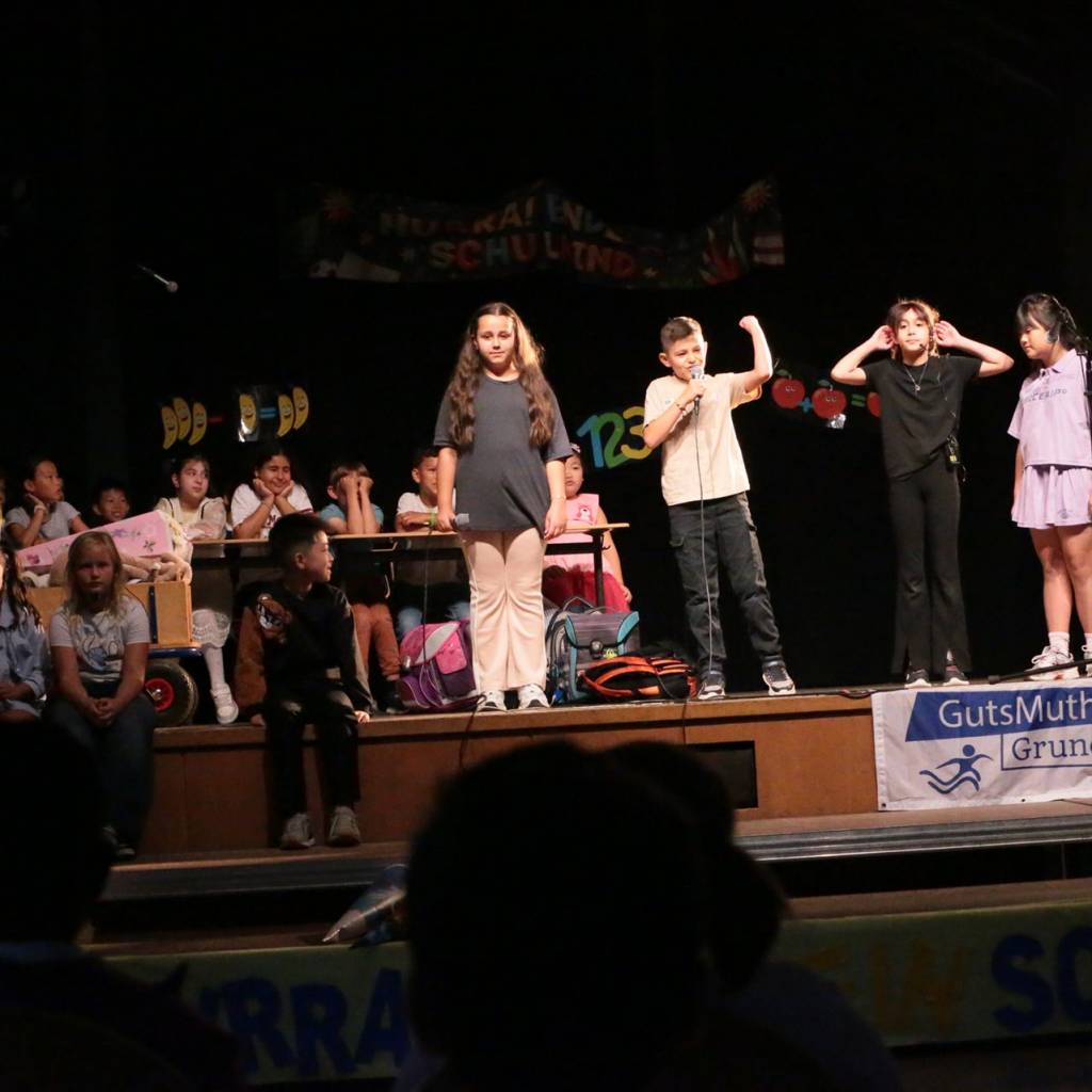 Alle das haben wir heute bei unser Einschulungsfeier deutlich gemacht und ich danke allen von Herzen, die dabei unterstützt haben. Allen voran den Kindern der Klassen 4b, 5a und 5b mit Frau Petri, die uns mit ihrem Theaterstück haben spüren lassen, dass all das bei uns schon gelebte Realität und nicht nur Vision ist.