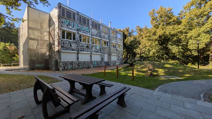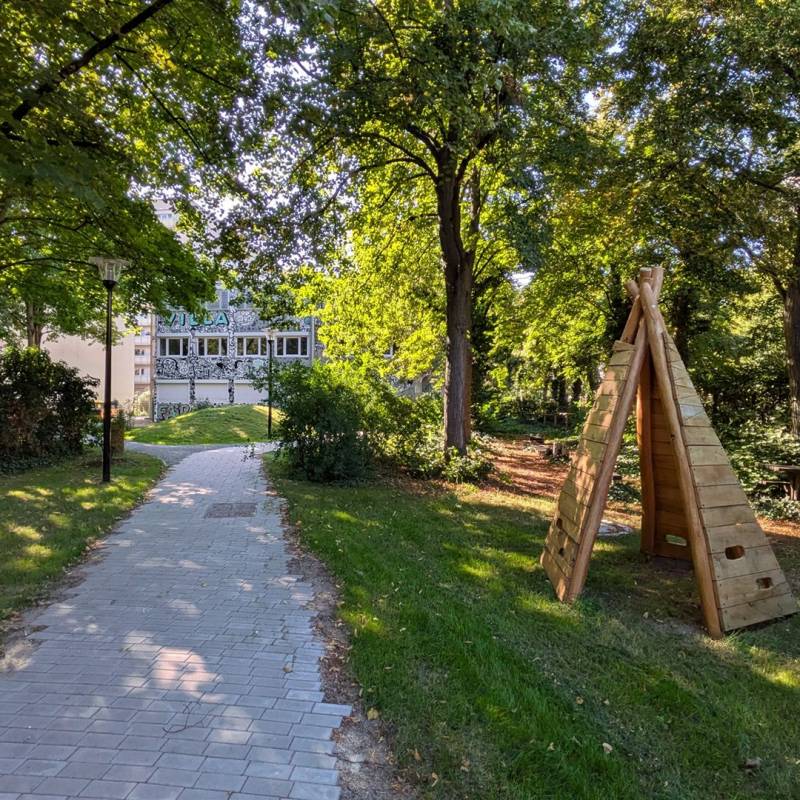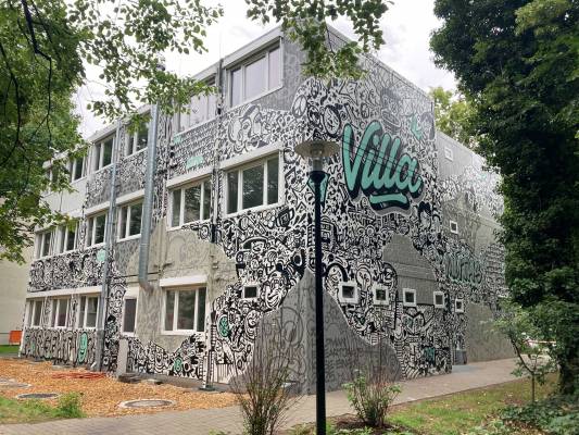 Umso schön ist es jetzt, da alles fertig ist. Nicht nur mehr Räume haben wir, sondern auch viel mehr Platz auf unserem Schulhof und über eine weitere Mensa dürfen wir uns freuen. Unsere kleine Villa erstrahlt mit der schönsten Schulfassade der ganzen Stadt, denn niemand geringerer als Hülpman (alias Felix Hülpüsch) hat mit seinen Kollegen EineArtJakob und KobeEins sichtbar gemacht, was uns im Inneren aus macht. Uns so kann man nun schon an der Fassade und von weitem erkennen, welche Werte die Grundlage unserer Arbeit sind.