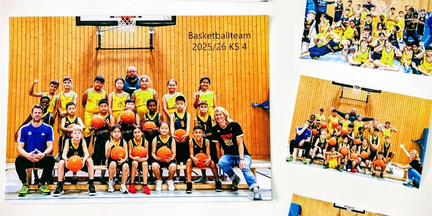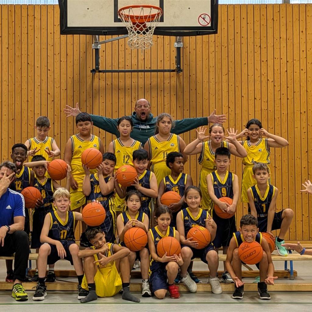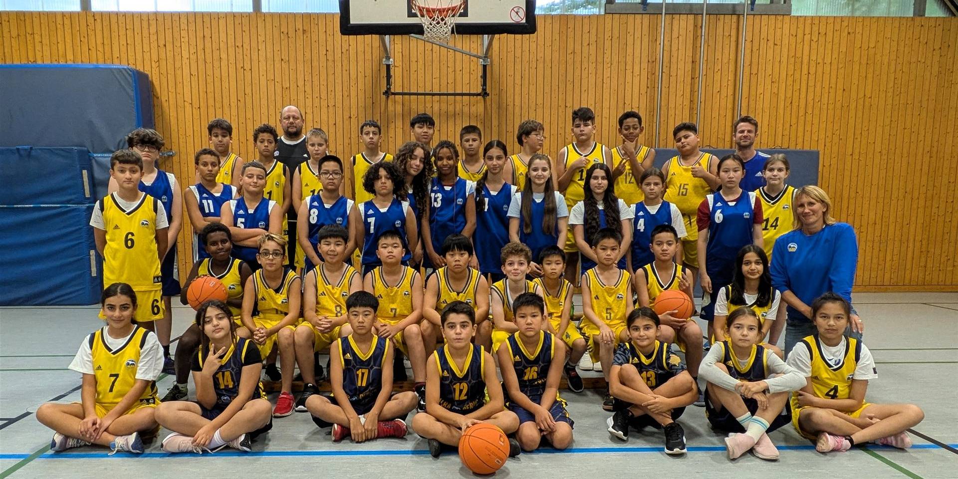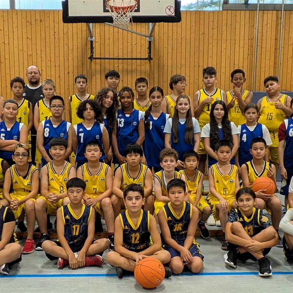 Über 100 Kinder spielen inzwischen bei uns Basketball. Das ist ein Viertel aller unserer Schülerinnen und Schüler. Die Freude ist nach wie vor riesig und die Motivation nach dem EM-Titel besonders hoch. Und so haben wir heute die Saison wie immer mit den Teamfotos begonnen uns mussten wirklich fast jedes unserer Trikots heraus holen. Und wie bei den Profis darf dabei natürlich auch das Spaßfoto nicht fehlen.
