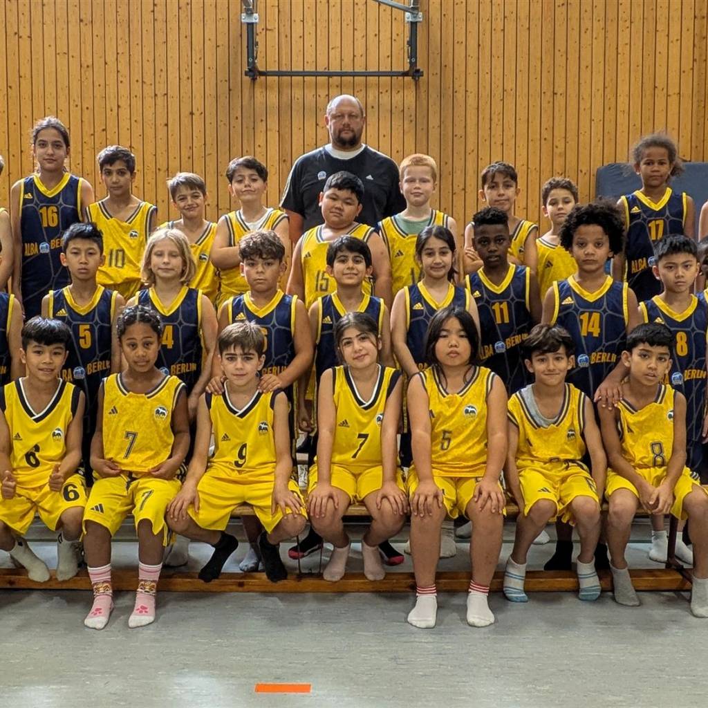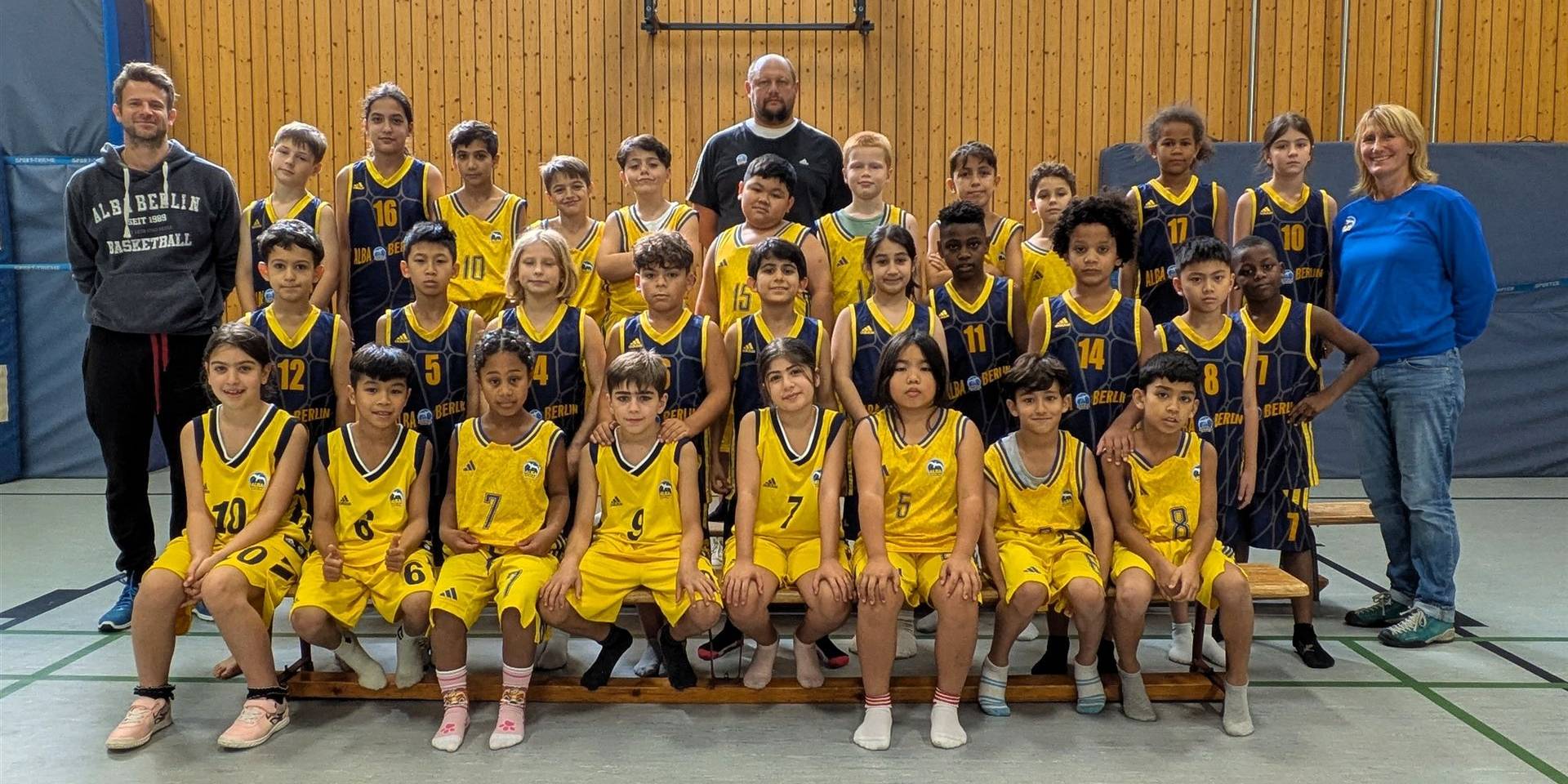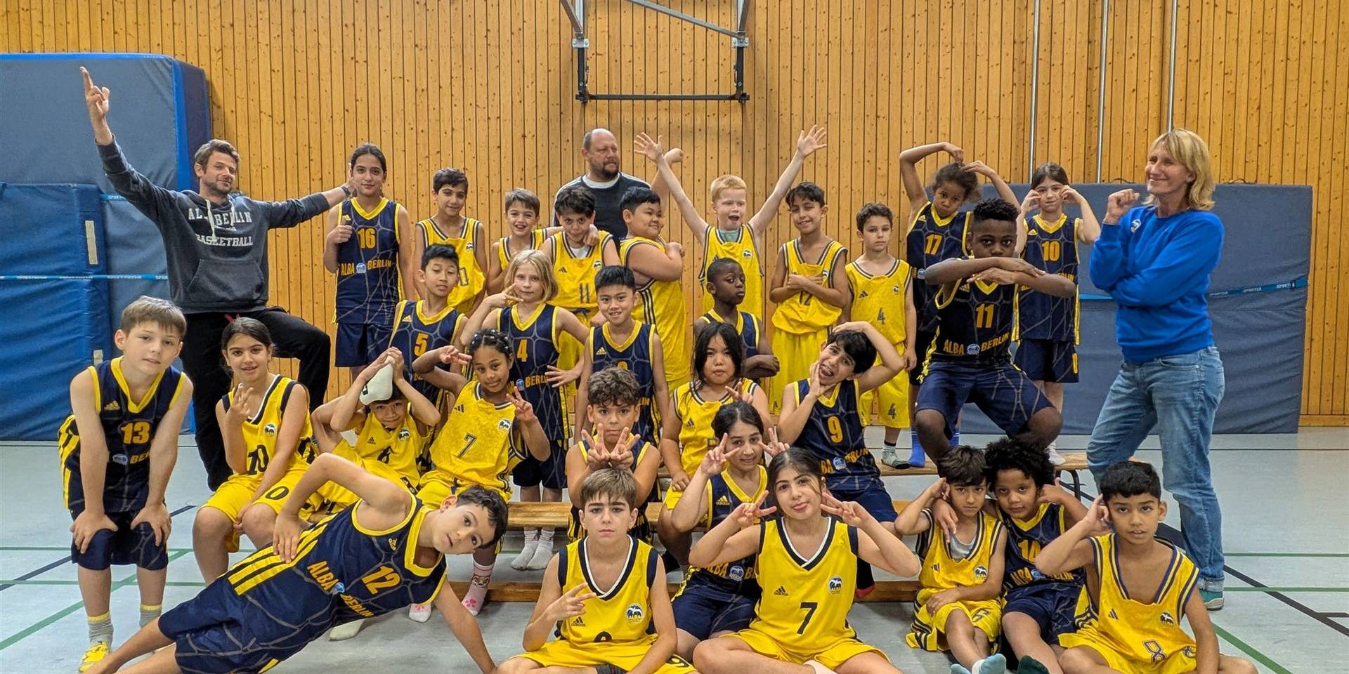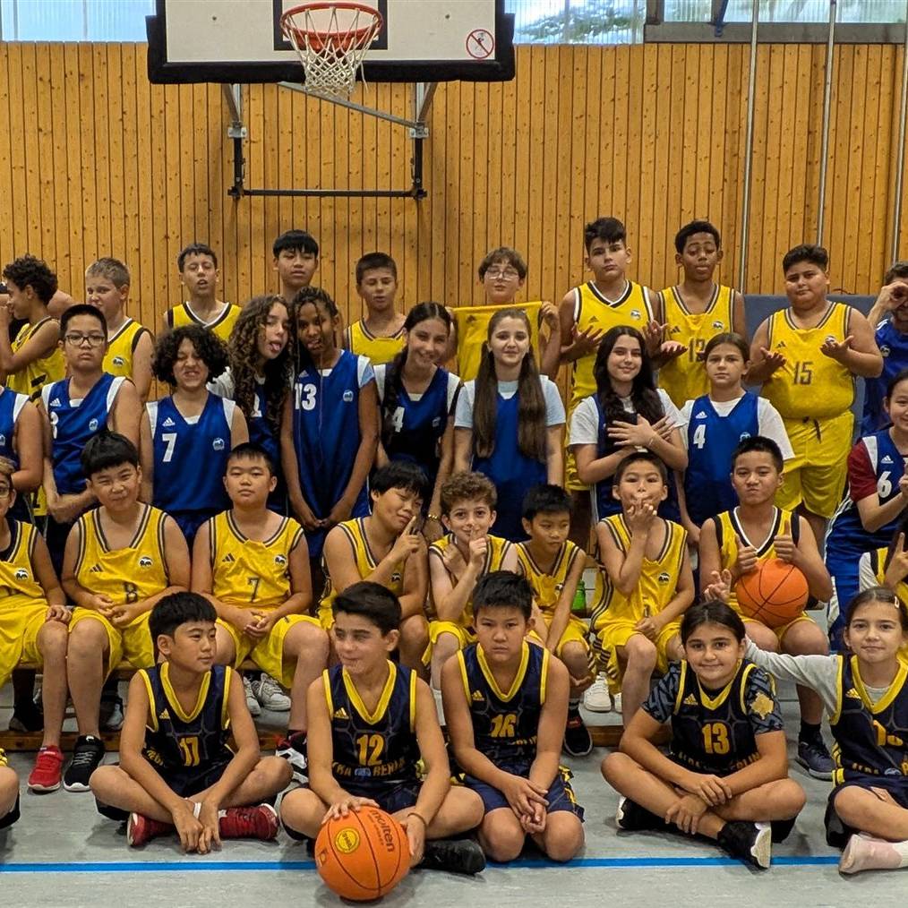 Über 100 Kinder spielen inzwischen bei uns Basketball. Das ist ein Viertel aller unserer Schülerinnen und Schüler. Die Freude ist nach wie vor riesig und die Motivation nach dem EM-Titel besonders hoch. Und so haben wir heute die Saison wie immer mit den Teamfotos begonnen uns mussten wirklich fast jedes unserer Trikots heraus holen. Und wie bei den Profis darf dabei natürlich auch das Spaßfoto nicht fehlen.