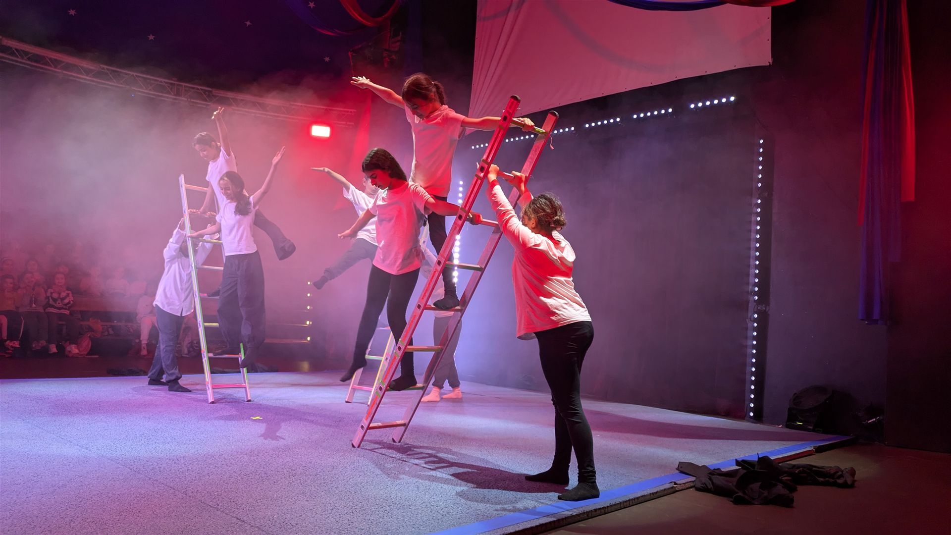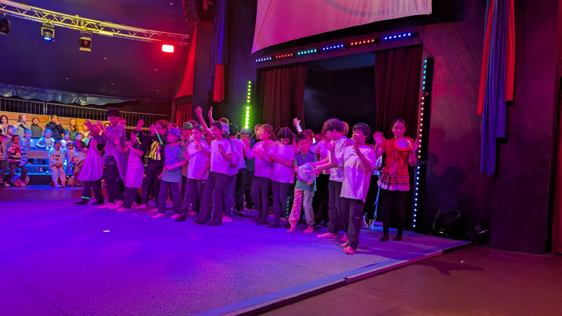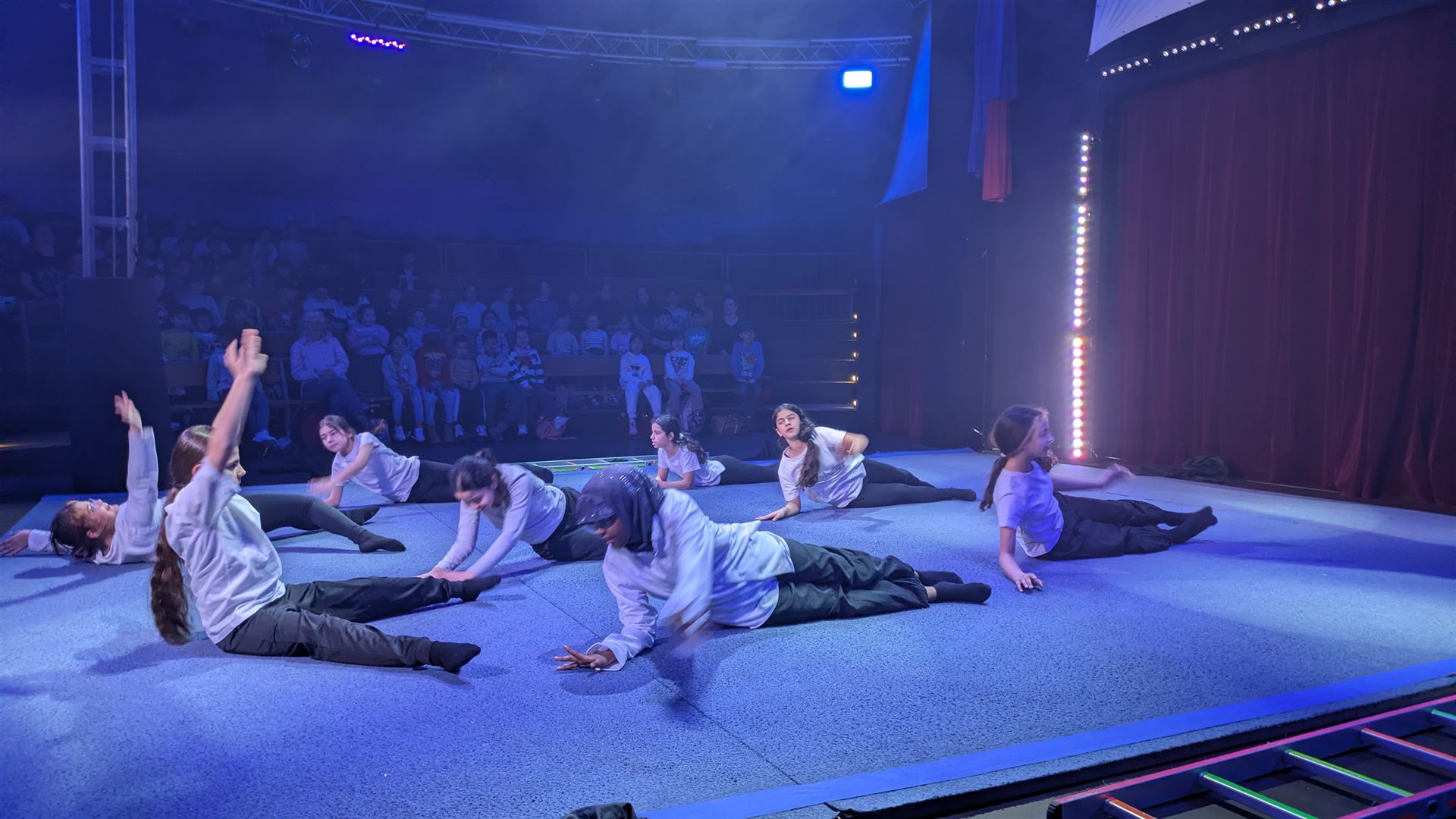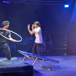 Zwei Klassen, 47 Kinder, 12 Stunden an vier Tagen und vier Zirkuspädagogen - das sind die Zutaten unserer Cabuwazi-Zirkuswoche, die wir unsere Fünftklässlern erleben lassen, um zusammen zu wachen und um über sich hinaus zu wachsen. Das Ergebnis war auch heute wieder eine großartige Zirkusvorführung, die komplett von den Kindern geleitet und gestaltet wurde. Das Thema ist diesen Jahr: Alltag. Und der war heute ziemlich bunt! Von Kugelakrobatik, über Pyramidenakrobatik, die lustigen Clowns, die Trampolinspringenden bis hin zu den Trapezkünstlern war wieder alles dabei. Viel Rhythmus, viel Energie, viel Spaß. Es war auch heute wieder eine große Freude für unsere Schulgemeinschaft und die Eltern, die die Kinder mit viel Applaus bedachten.
