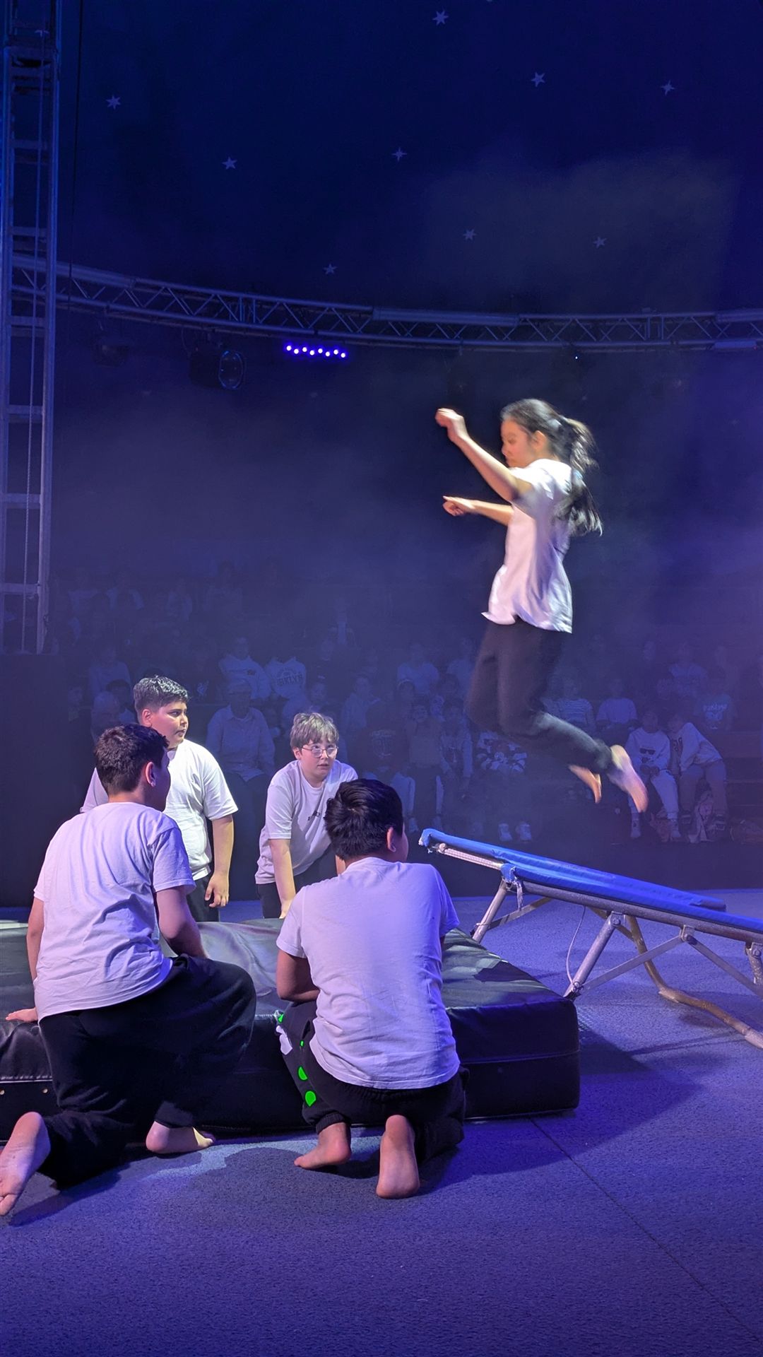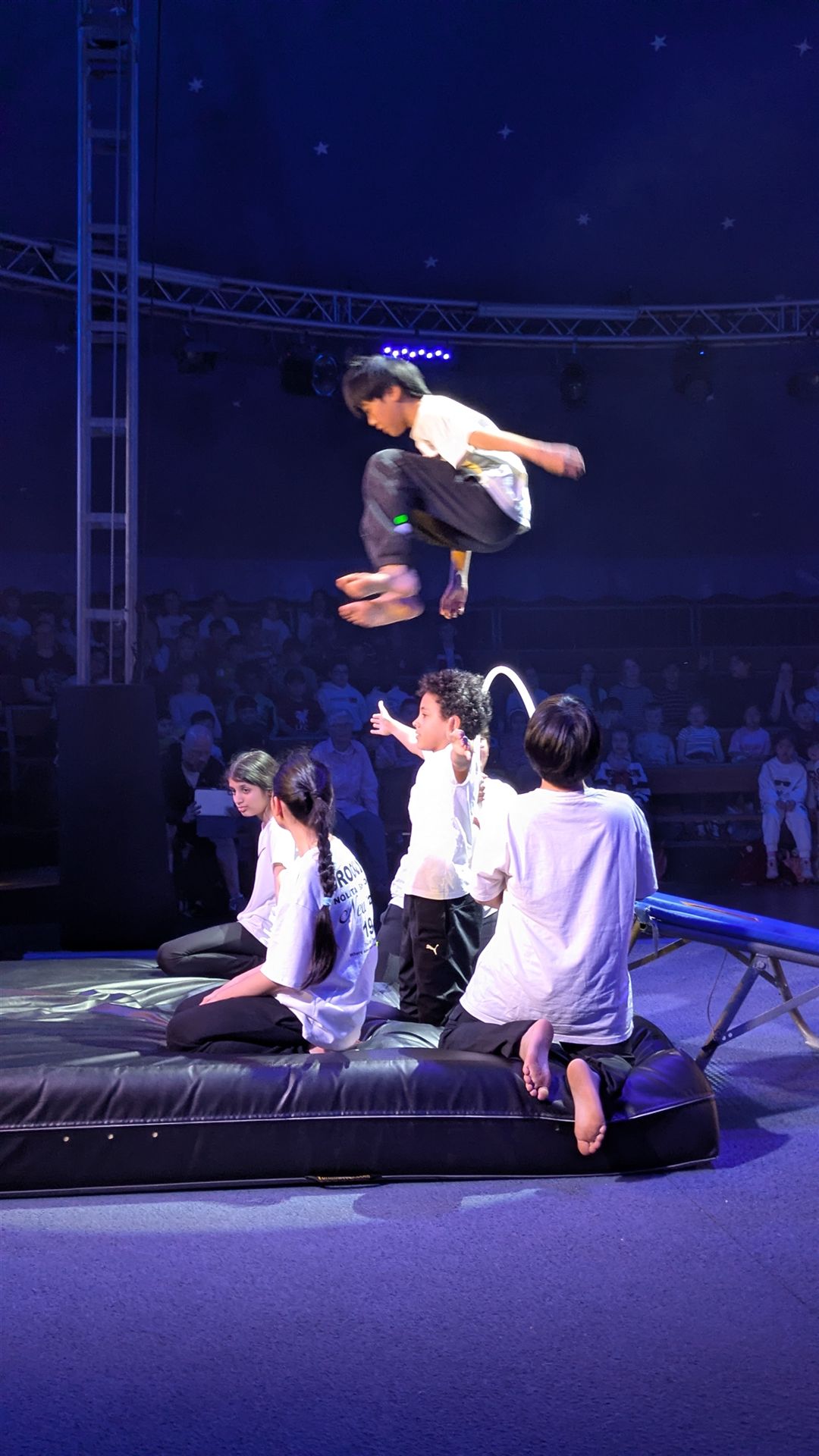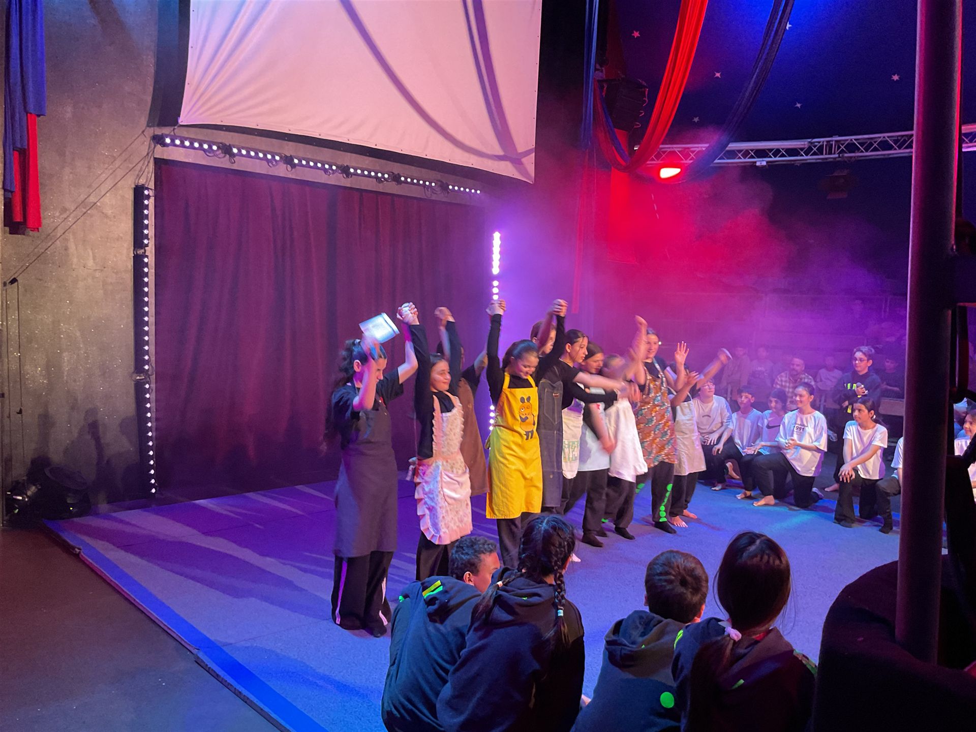 Zwei Klassen, 47 Kinder, 12 Stunden an vier Tagen und vier Zirkuspädagogen - das sind die Zutaten unserer Cabuwazi-Zirkuswoche, die wir unsere Fünftklässlern erleben lassen, um zusammen zu wachen und um über sich hinaus zu wachsen. Das Ergebnis war auch heute wieder eine großartige Zirkusvorführung, die komplett von den Kindern geleitet und gestaltet wurde. Das Thema ist diesen Jahr: Alltag. Und der war heute ziemlich bunt! Von Kugelakrobatik, über Pyramidenakrobatik, die lustigen Clowns, die Trampolinspringenden bis hin zu den Trapezkünstlern war wieder alles dabei. Viel Rhythmus, viel Energie, viel Spaß. Es war auch heute wieder eine große Freude für unsere Schulgemeinschaft und die Eltern, die die Kinder mit viel Applaus bedachten.
