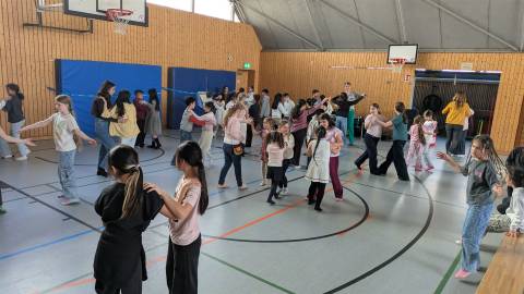 Bei uns lernen die Kinder im Musikunterricht die verschiedensten Tänzen. Von Discofox, Walzer, modernen Tänzen und Line Dance ist alles dabei. Beim Tanz in den Frühling sind alle eingeladen und dürfen sich ausprobieren und zeigen, was sie gelernt haben.