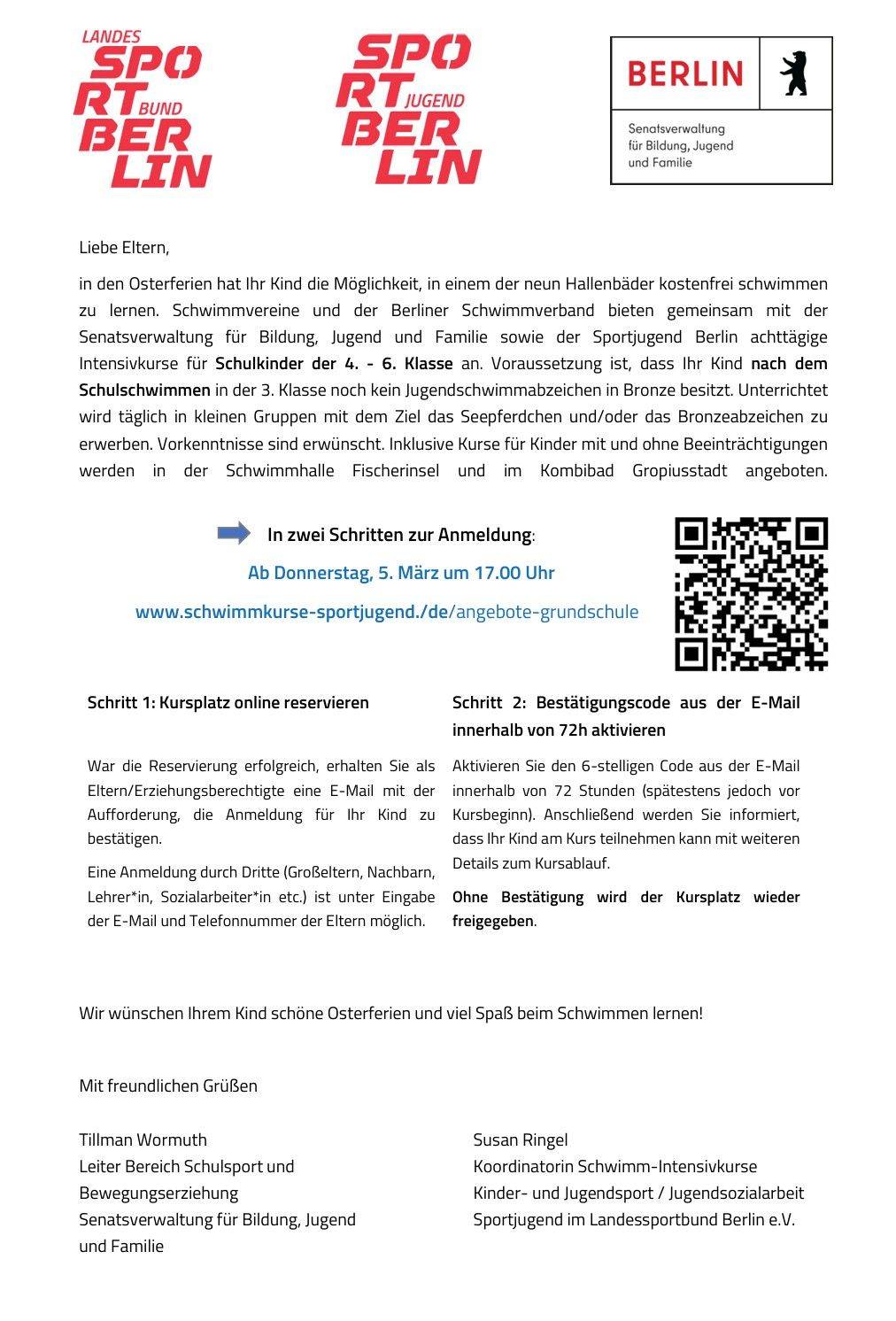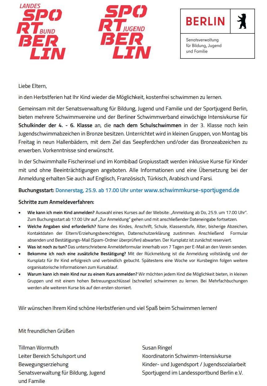 Kostenlose Ferienschwimmkurse