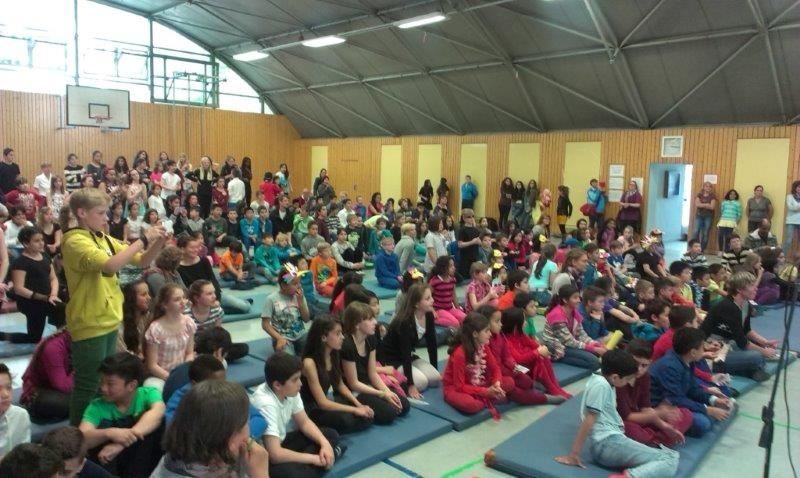 Was sie alles können... Die Turnhalle verwandelte sich heute wieder in ein großes Theaterhaus. Zu sehen und hören waren einfach unglaublich tolle Beiträge aller Klassen. Von Bodypercussion über Tanz, von Gesang bis Akrobatik war für jeden etwas dabei. Und bei so mach einem Lied ist die Gänsehaut nicht ausgeblieben. Der Jury fiel die Entscheidung nicht leicht, doch es musste eine Auswahl für das GutsMuths-Fest getroffen werden. Wir freuen uns, folgende Beiträge präsentieren zu dürfen: 3b, 4a, 5b, 6a und 6b.
