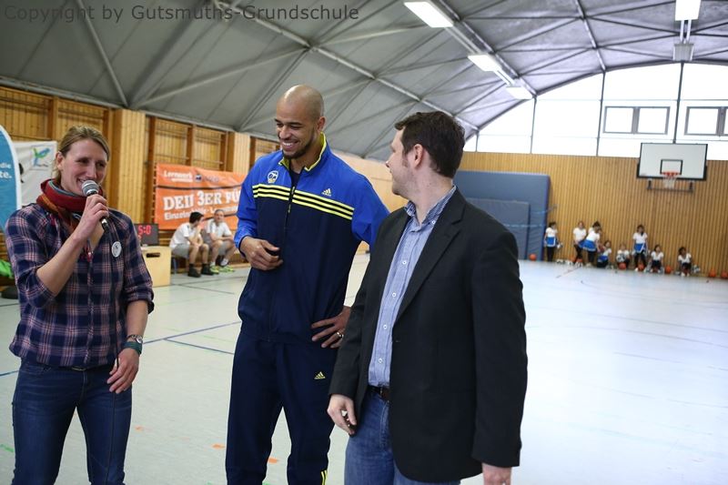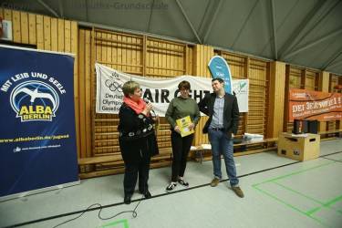 Die Siegerehrung führte schließlich unsere Stadträtin für Bildung und Sport, Frau Sabine Smentek, gemeinsam mit der Pressesprecherin der WBM (Wohnungsbaugesellschaft Mitte) und Daniel Endres von Alba Berlin durch.