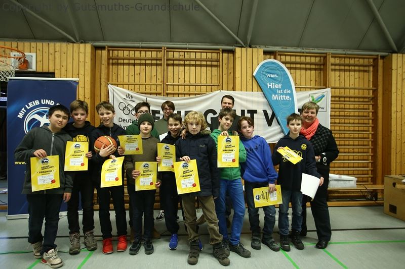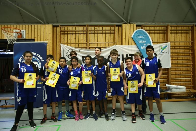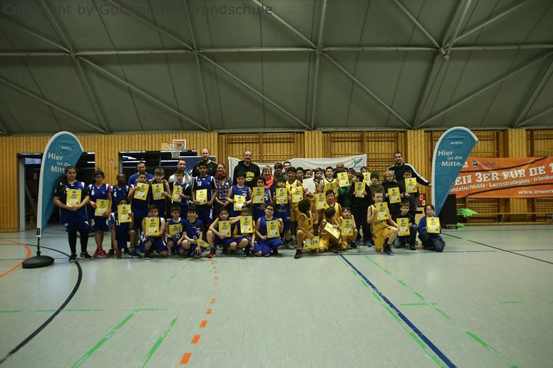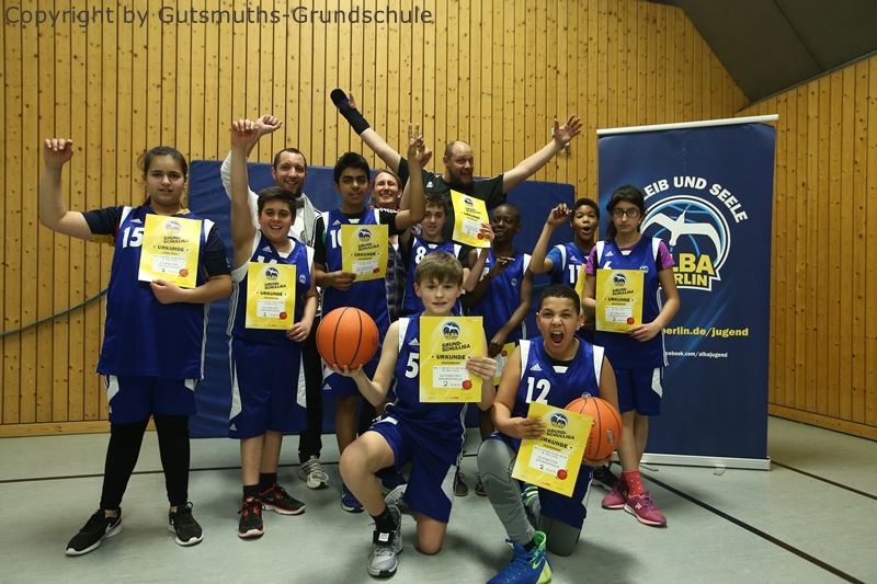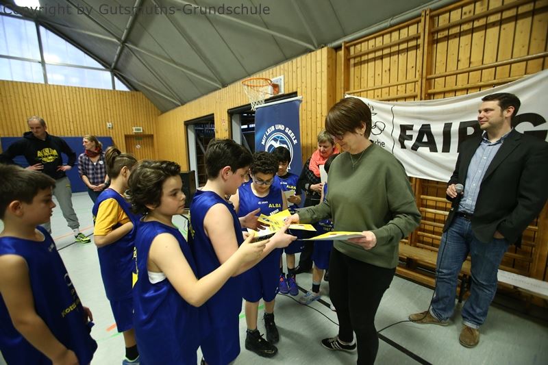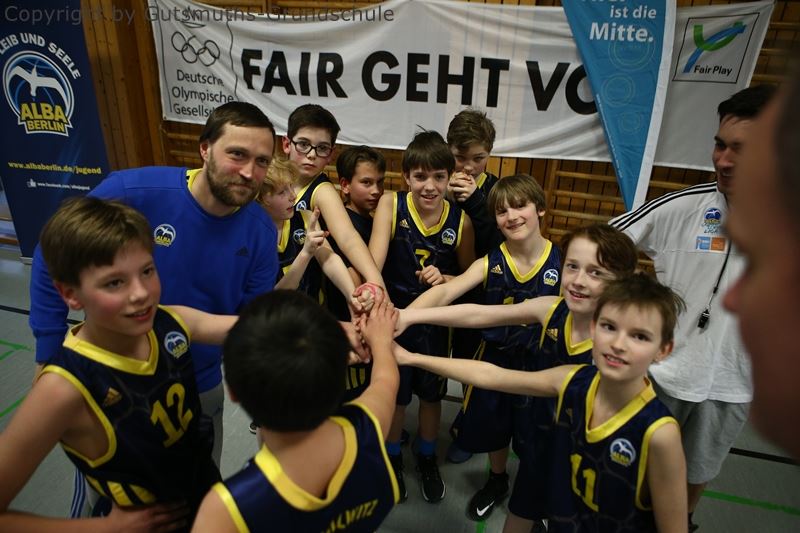 Wir bedanken uns bei allen, die heute zum Gelingen des Tages beigetragen: Die Lehrer und Trainer, den Schiedsrichtern, Alba Berlin, der Alba Jugendküche für das tolle Buffet, Frau Sementek und der WBM, unseren Cheerleadern für die tolle Performance und das Durchhaltevermögen, den Eltern am Buffet und allen Gästen, die die Spieler*innen so großartig unterstützt haben.