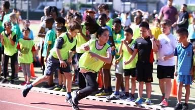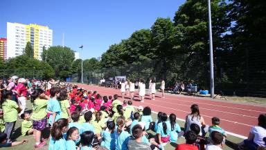 Abgerundet wird die Woche mit dem GutsMuths-Staffellauf, zum dem wir alle Schulen aus dem Bezirk einladen. Im Anschluss werden die Kinder bei der Siegerehrung geehrt. Im Rahmen des Sportfestes nehmen alle am Wettbewerb der Bundesjugendspiele teil.